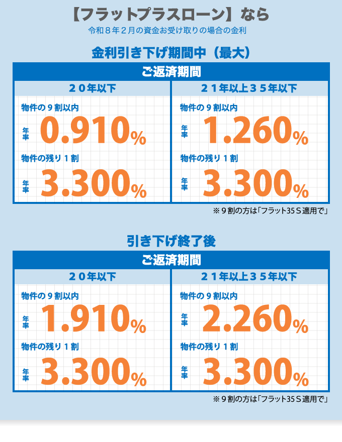 【フラット35】は最長35年の長期固定金利の住宅ローンです。 資金のお受け取り時にご返済終了までのお借入金利、ご返済額が確定します。 |